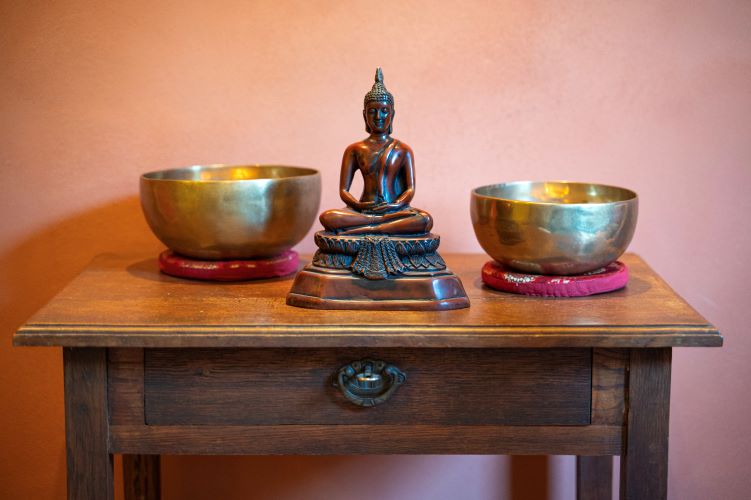 Het lichaam bestaat voor 70% uit water en de trilling van de schalen hebben daar effect op. De klank herinnert aan geborgenheid en oervertrouwen.